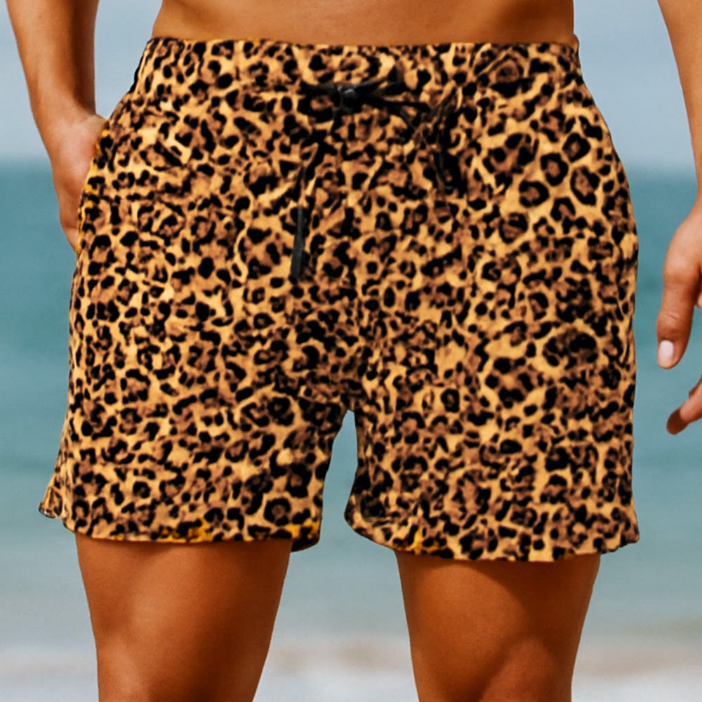Add a touch of daring flair to your wardrobe with our Men's Comfortable and Breathable Leopard Print Shorts. Designed for both style and ease, these shorts are an ideal choice for summer beach outings, poolside lounging, or casual adventures. The lightweight, airy fabric helps you stay cool on hot days, while the elastic waistband with an adjustable drawstring ensures a secure, personalized fit and effortless movement.
