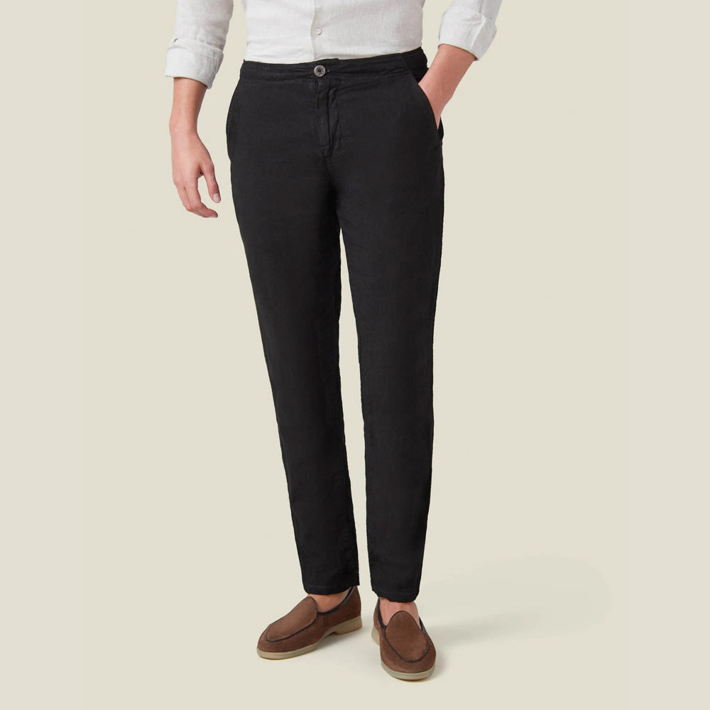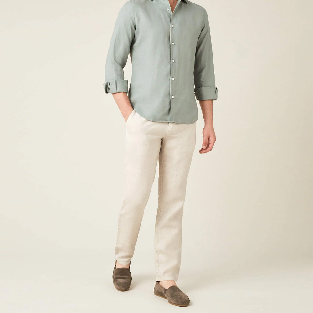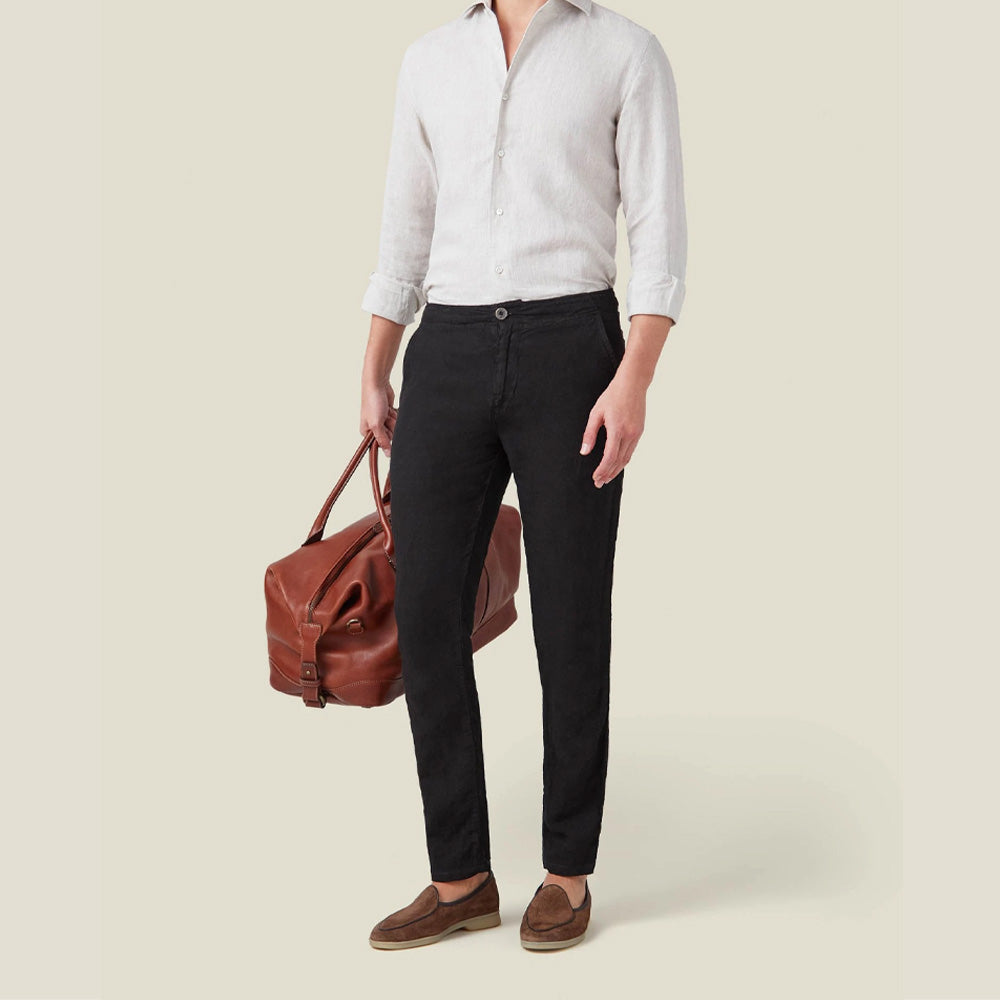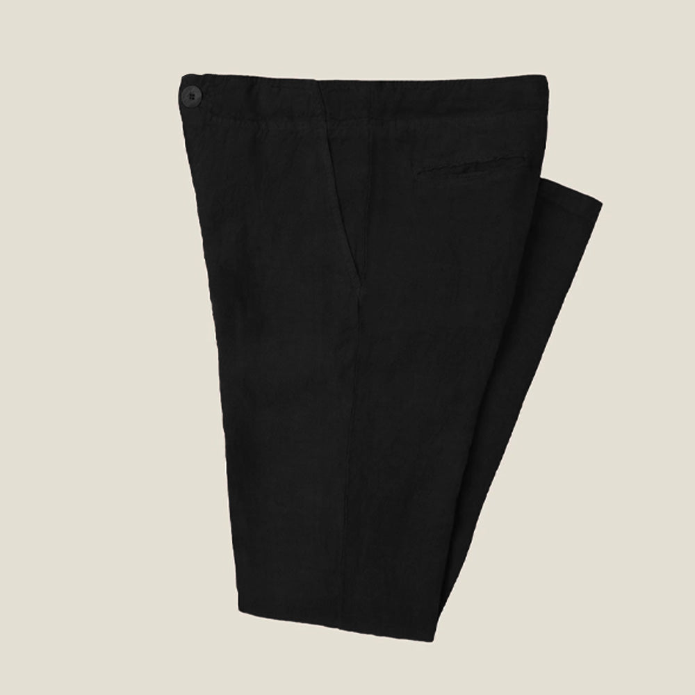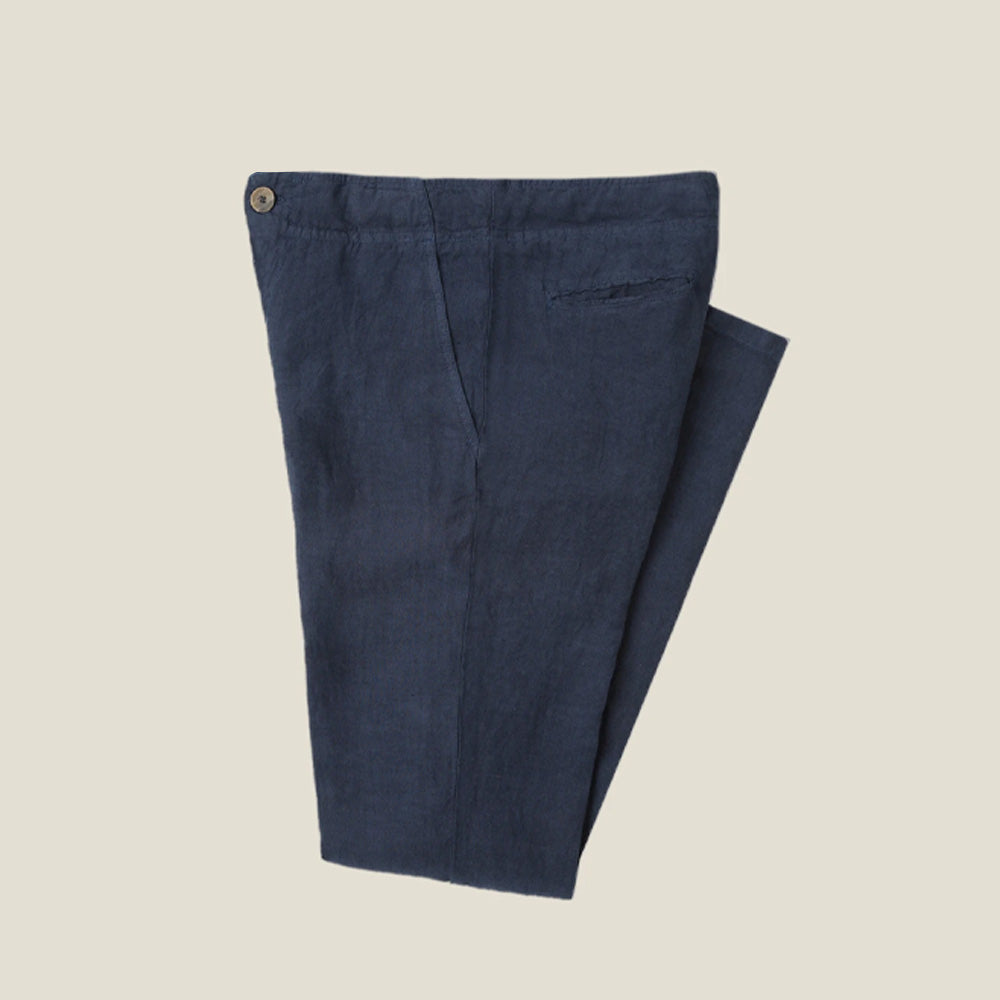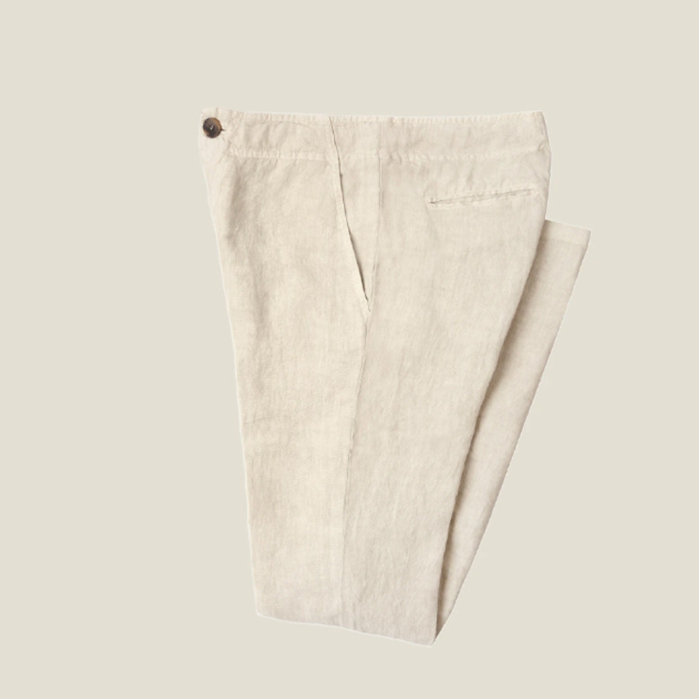 These men's linen trousers are made of high-quality natural linen fabric, which is lightweight and breathable, giving you a refreshing experience in hot weather. The unique fine texture and natural pleats of natural linen add a casual and elegant wearing style, showing a simple yet high-end texture.