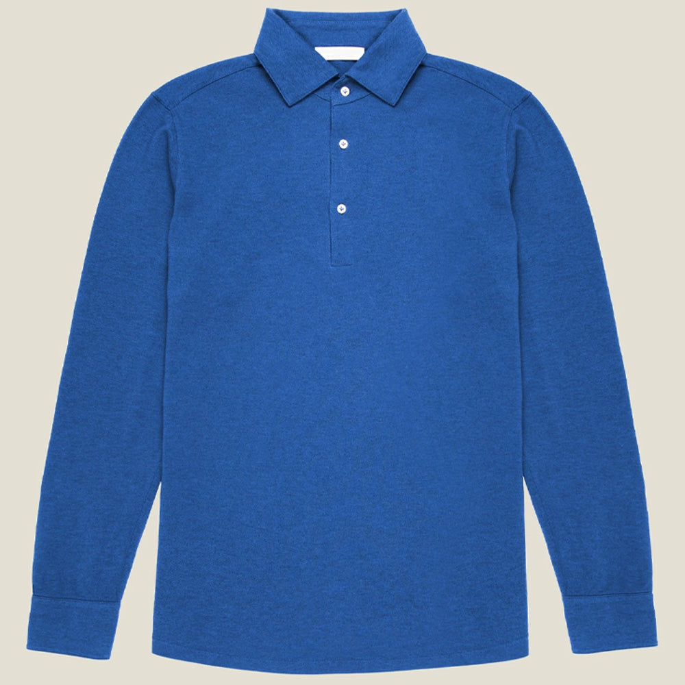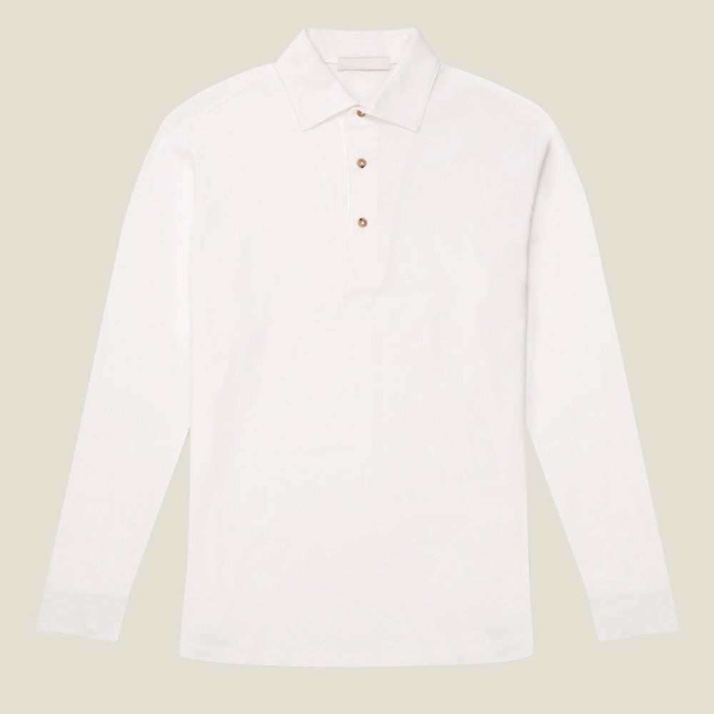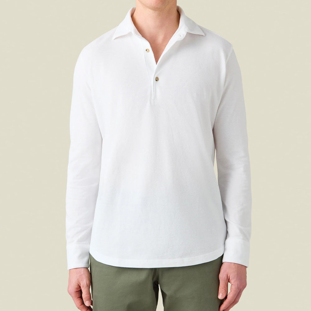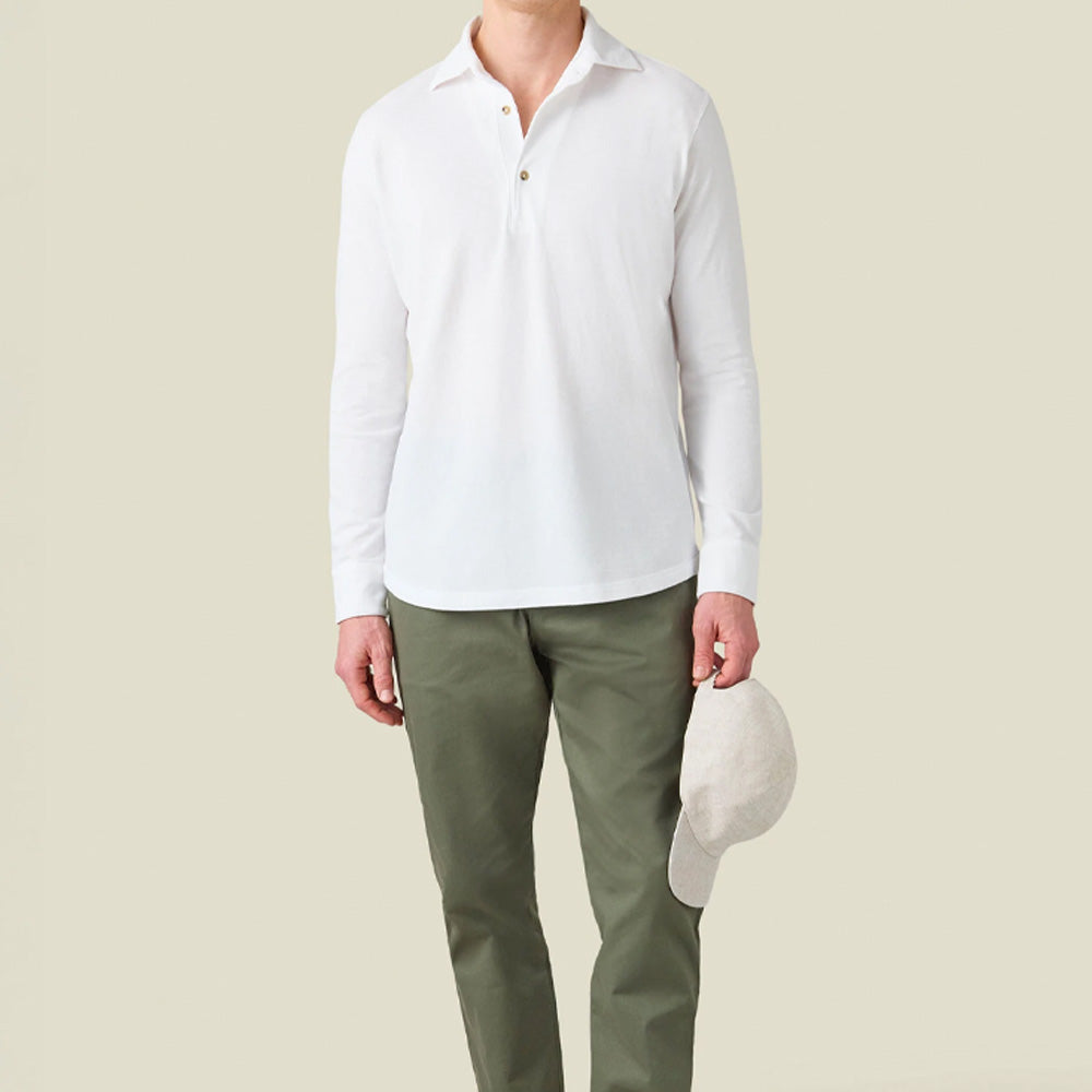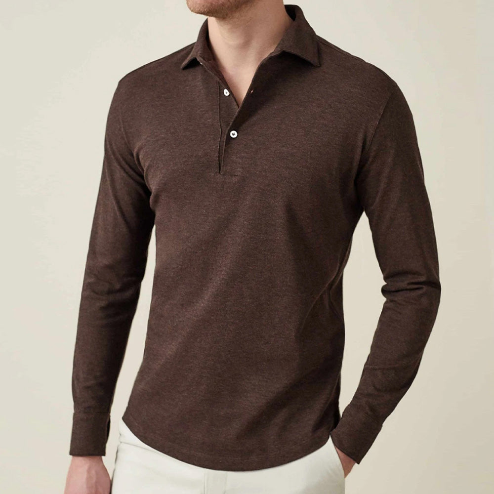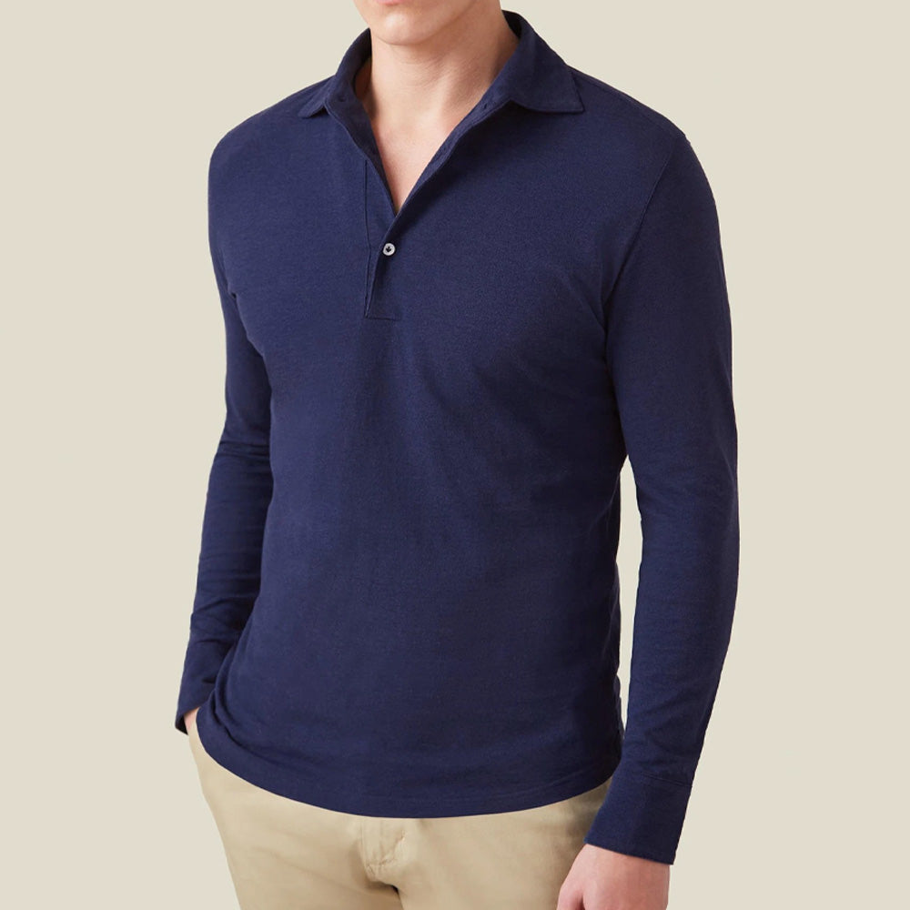 Men's Long-Sleeved Lapel Solid Color Cotton Polo Shirt
