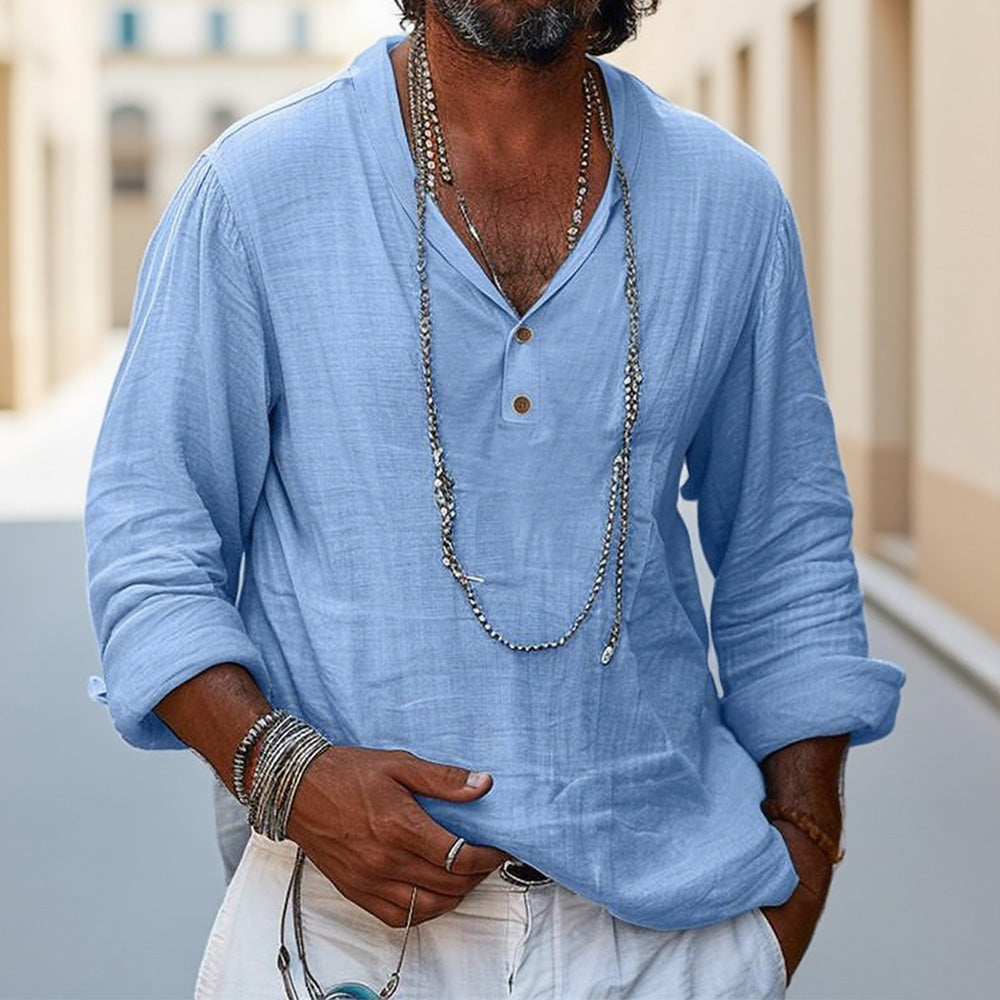 Introducing our Men's Retro Cotton-Linen Long Sleeve Shirt — a perfect blend of classic style and breathable comfort. Crafted for the man who values timeless fashion with a relaxed fit, this shirt combines the natural texture of cotton and linen for a lightweight, airy feel. Its vintage-inspired design and soft fabric make it ideal for both casual outings and smart-casual occasions, adding a subtle touch of retro elegance to your wardrobe all year round.