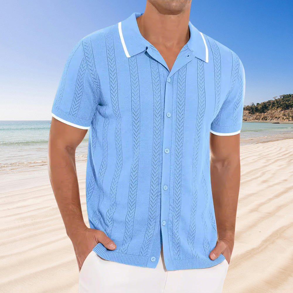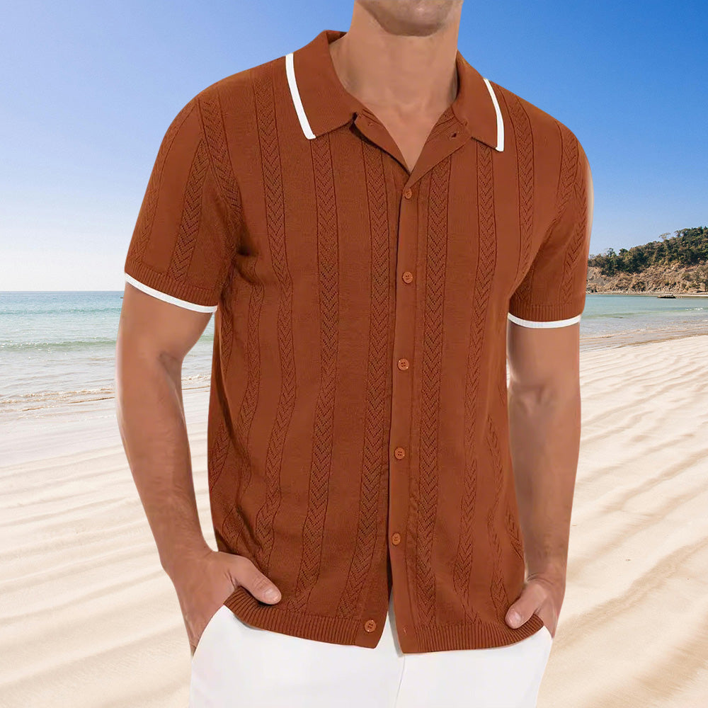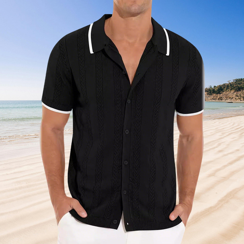 Men's Short-Sleeved Polo Shirt with Single-Breasted Knit Design