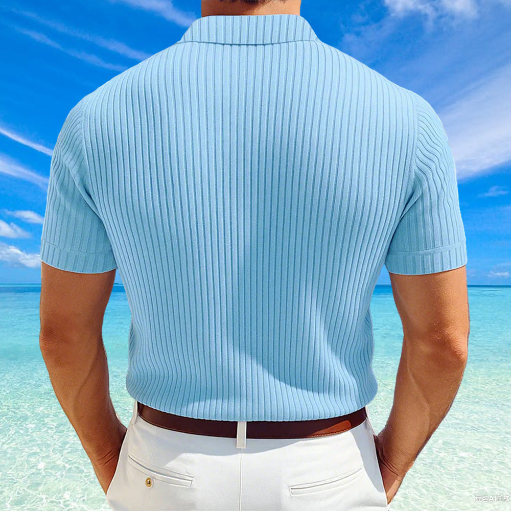 The Men's Slim-Fit Solid Color Knit Polo Shirt merges classic polo charm with modern comfort. Its soft fabric, elegant lapel collar, and streamlined design make it a versatile addition to any wardrobe, perfect for both casual and smart-casual settings. Whether worn on its own or layered, this polo elevates your look with understated sophistication and all-day comfort.