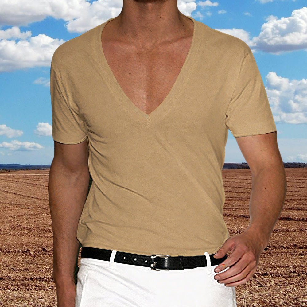 Men’s Breathable Cotton Solid Color V-Neck Casual T-Shirt