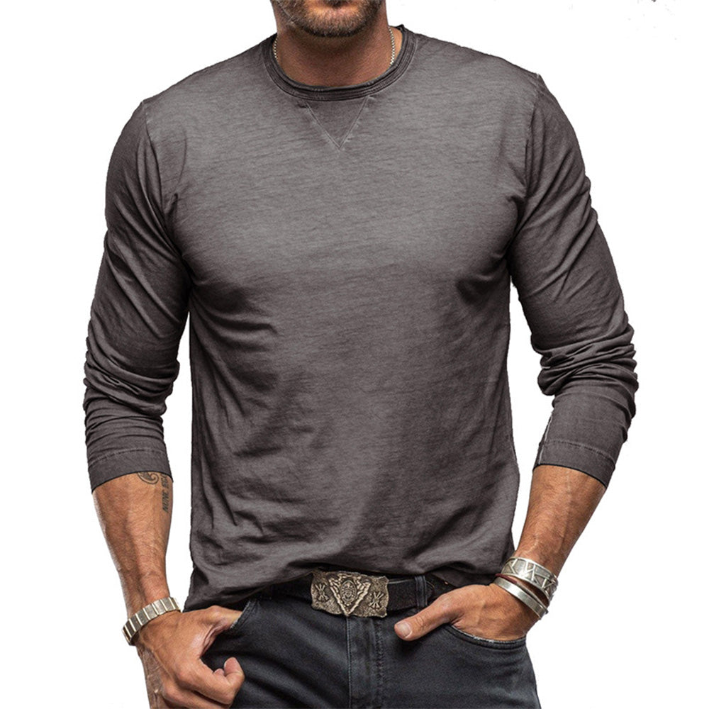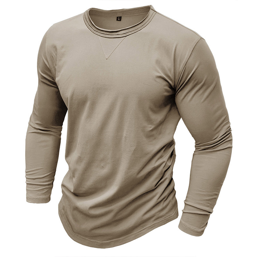 Men’s Long Sleeve Crew Neck Solid Color T-Shirt